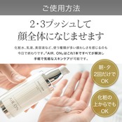・洗顔後、適量(1プッシュ~2プッシュ)を手に取り、お顔全体に伸ばしてなじませて下さい。