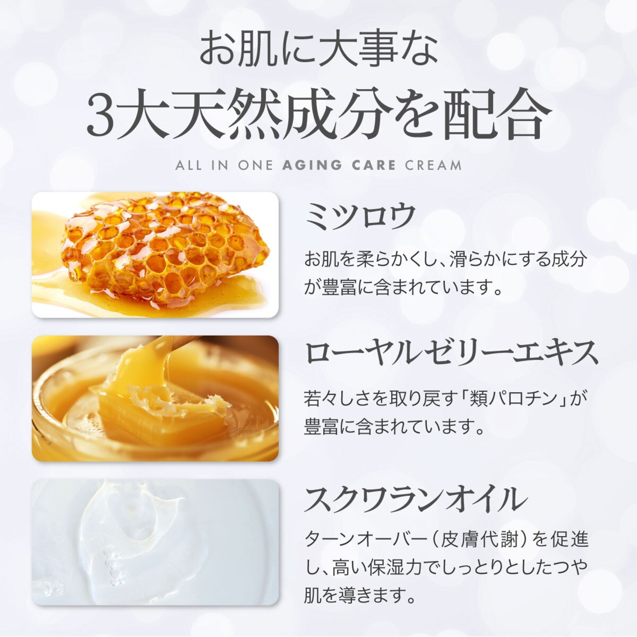 世界三大美女のクレオパトラも愛用していたと語り継がれるローヤルゼリーを同シリーズ「moist 1 cream」の2倍量を配合。